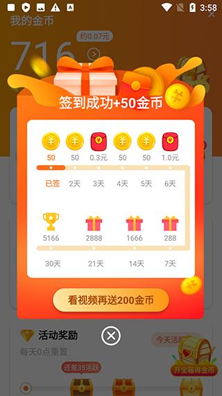 3、除了签到赚金币以外,还可以通过做任务活动和看视频赚取金币。