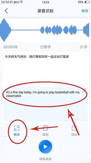 4、转写完成后,我们可以点击下方的翻译按钮,还可以将中文翻译成英文