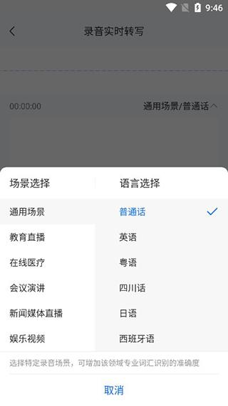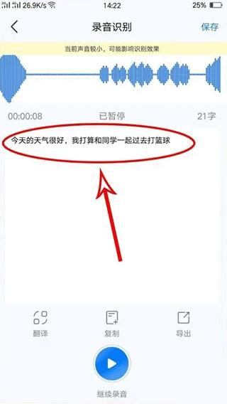 2、在录音实时转写中,输入语音便可转换成文字了;
