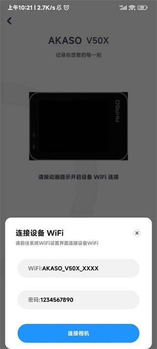 快速连接:AKASO GO app可以通过蓝牙或Wi-Fi快速并自动地连接到AKASO的运动相机或行动相机,操作简便快捷。