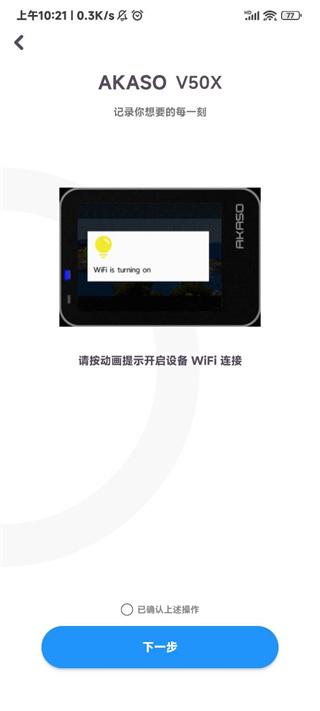 5、按照平台的动画提示开启设备wifi连接,点击下一步;