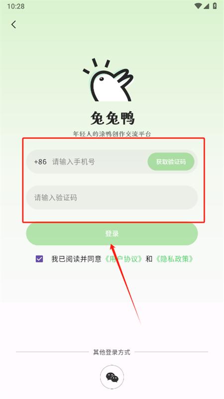 3、进入登录页面后输入手机号和验证码即可快速注册登录