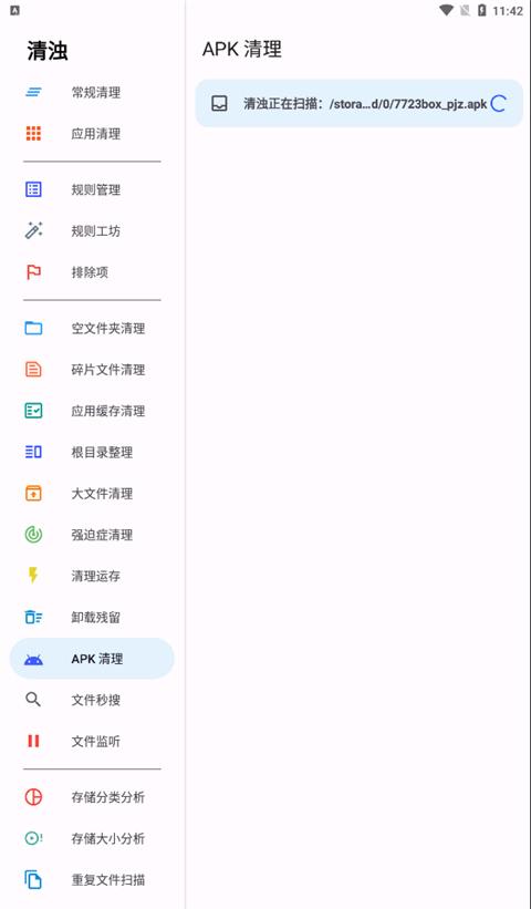 3、这里以“APK清理”功能为例进行说明。毕竟,手机中许多软件或游戏的APK文件通常占用较大的存储空间。点击“APK清理”选项即可进入。