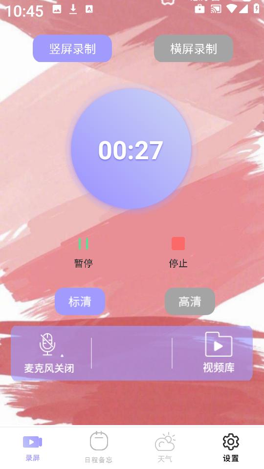 2、接着点击下方的“录屏”,支持竖屏以及横屏录制功能,如图所示。