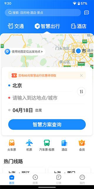 智行客户端提供机票、酒店、火车票、汽车票、景点门票预订;