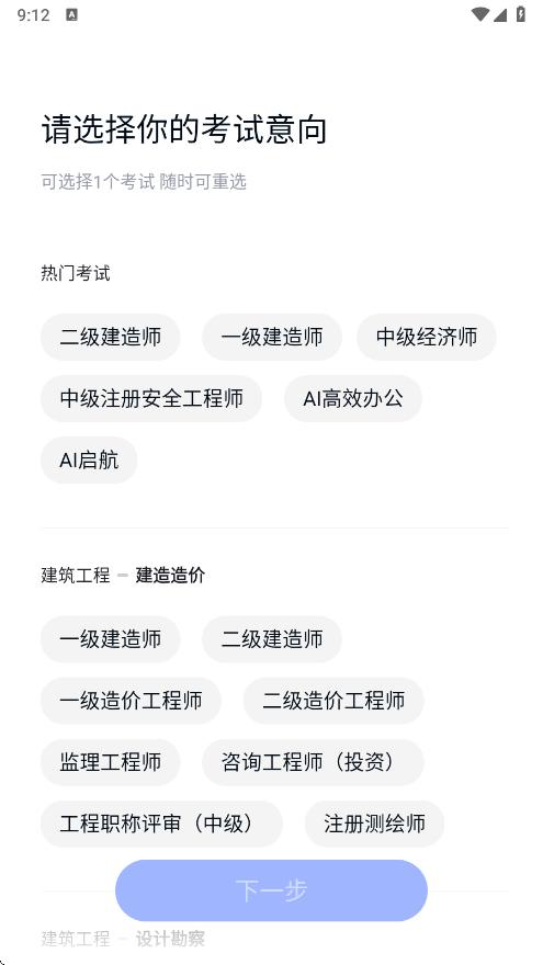 1、我们下载好软件进入后,选择一下自己的考试意向