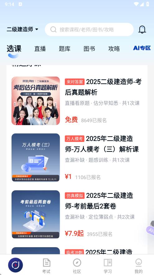 环球网校app官方客户端这里有名师精选好课程,智能化的提升学习系统,一建二建经济师职业考试必备的工具,软件能助你顺利通关,轻松学习更多的精品课程,18年的培训经验总结为需要的用户提供最佳学习方法。