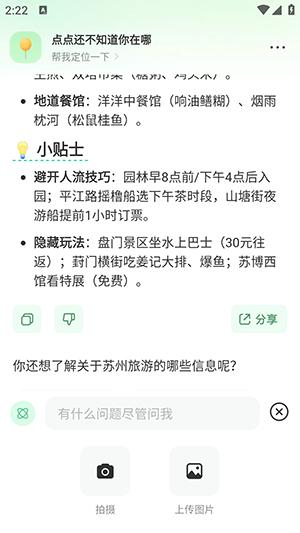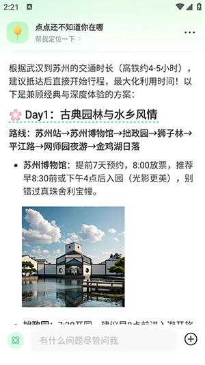 2、软件使用非常简单,只需要在输入框中输入需要查询的问题,比如苏州三天两晚旅游攻略。