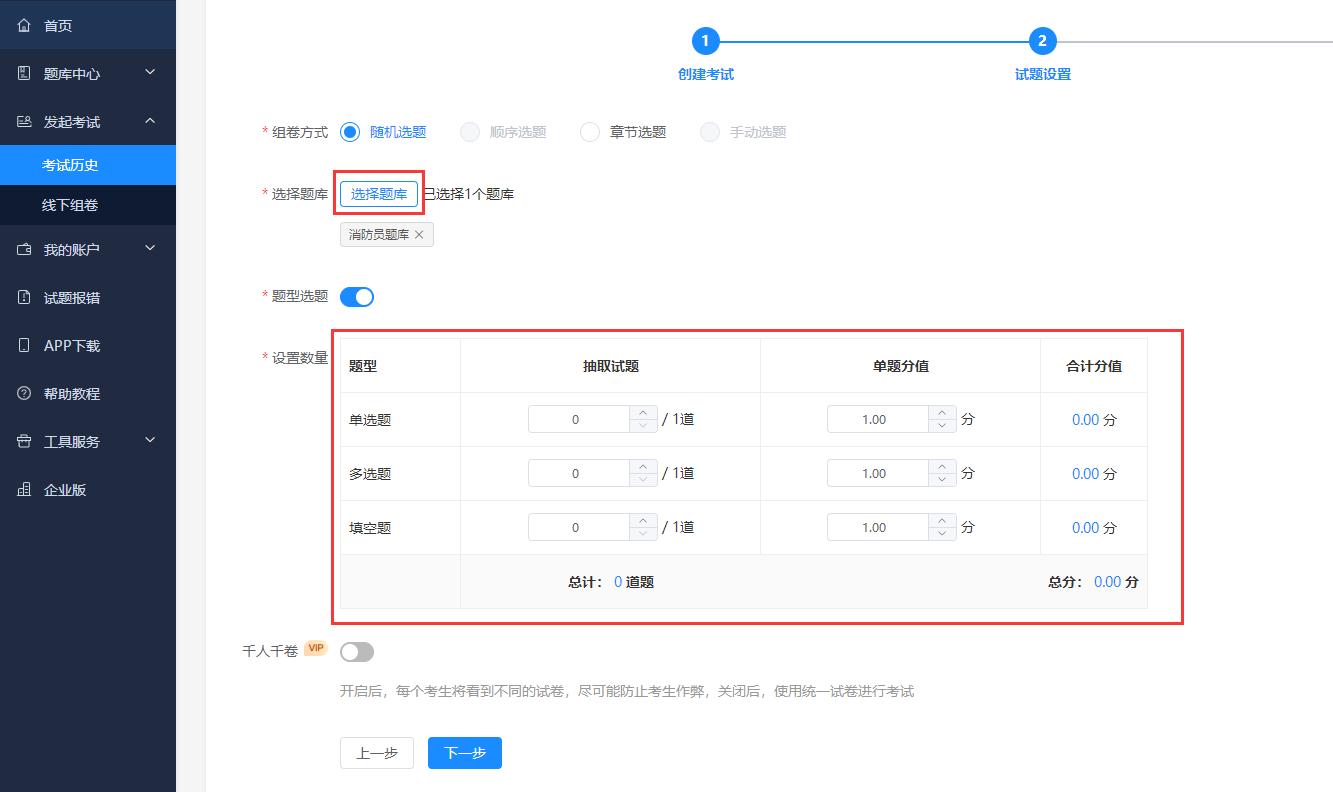 第三步、勾选题库,配置试题数量和分值