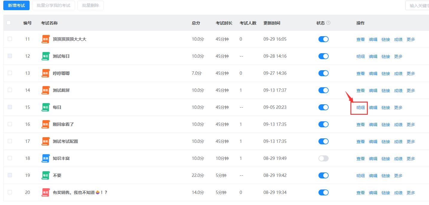 点击查看每天考生的成绩