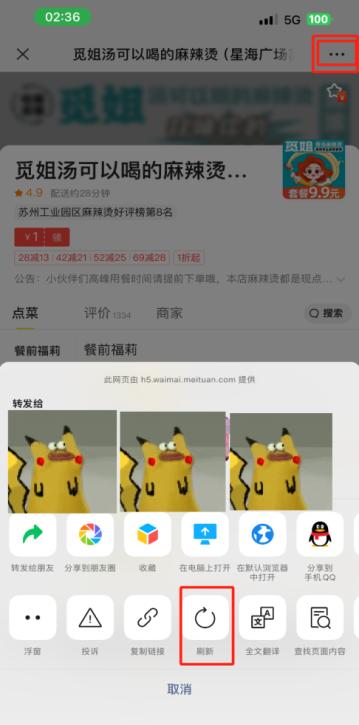 点击蓝色小飞机后,回到微信打开的店铺页,点击右上角一个点,刷新页面一次