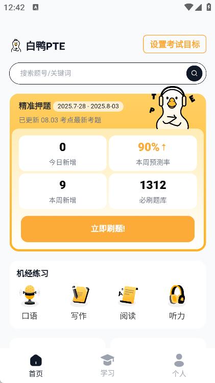 白鸭PTE是一款专为全球PTE考生设计的AI驱动一站式学习平台,采用与培生相似的AI评分技术,从发音、流利度、内容等多个维度为口语作答打分,成为众多PTE考生的首选备考工具,有需要的用户快来下载吧。