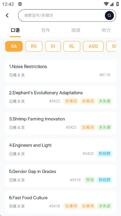 海量真题收录:全面覆盖听说读写(RA, DI, RL, WFD等)所有题型。