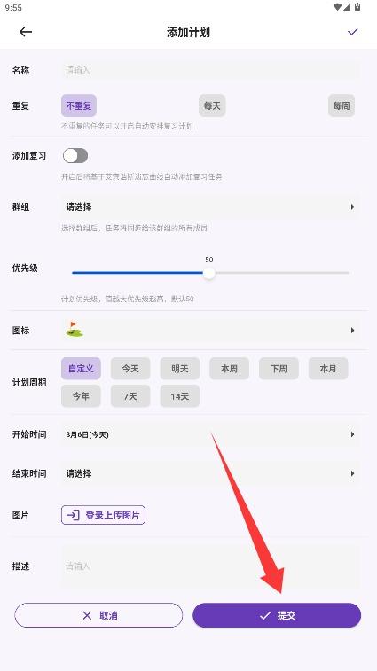 4、填写完整计划名称、重复周期等具体信息,确认无误后提交保存计划内容。