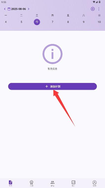 3、进入主页面点击添加计划功能模块,开始创建当天的详细学习任务清单。