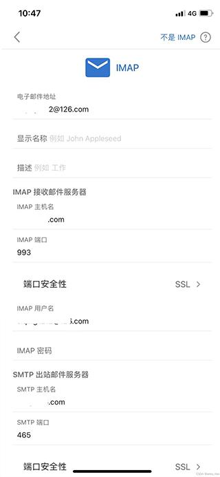 然后,outlook会弹出与该邮箱类型一致的配置文件设置窗口,比如,如图7所示,当前邮箱的类型为IMAP,需输入电子邮件地址、邮件服务器、端口等信息,这类信息一般需要公司的IT部门提供。