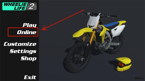 2、当设置完成后可以点击游戏主界面的“play”或“online”即可进入游戏,游戏的操作也很简单,左侧按钮控制方向,右侧↑按钮可以控制摩托车抬头,而下侧两个按钮则是刹车键与油门键