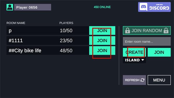 2、待进入新界面后,可以选择左侧的任一房间点击“join”即可加入该房间,或者点击右侧“create”创建一个新的房间