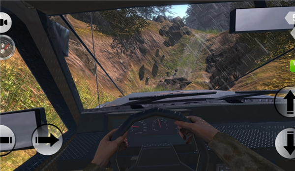 1、在泥泞越野模拟器游戏中只要点击虚拟摇杆,控制小车的方向,就能平稳前行;