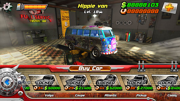 1、首先打开死亡之旅破解版,进入游戏后,你可以购买自己喜欢的赛车,种类很多。