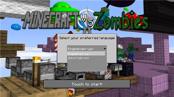 1、在本站下载并安装我的世界植物大战僵尸手机版,进入游戏后将语言设置成中文;