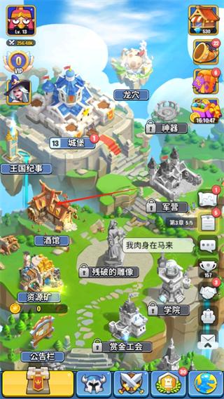 5、我们的英雄可以在主城页面的酒馆处获取,如图所示点击;