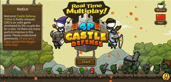 1、首先进入守城联机游戏,这里玩家可以选择中国国旗然后文字便可切换为中文;