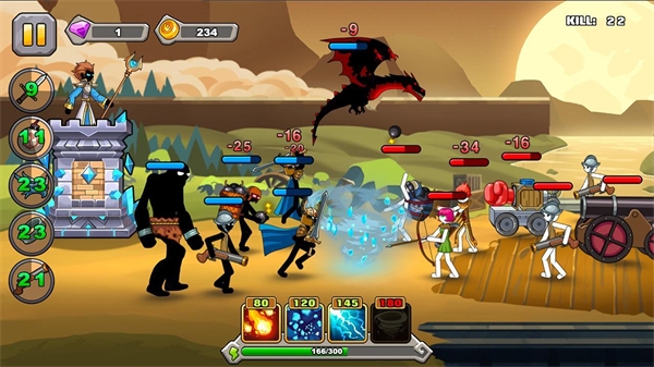 1.操作比较简单。准备好 CD 后,单击要招募的各种武器的图标。2.经典关卡版结合塔防玩法,通过累积成本来召唤不同的武器。