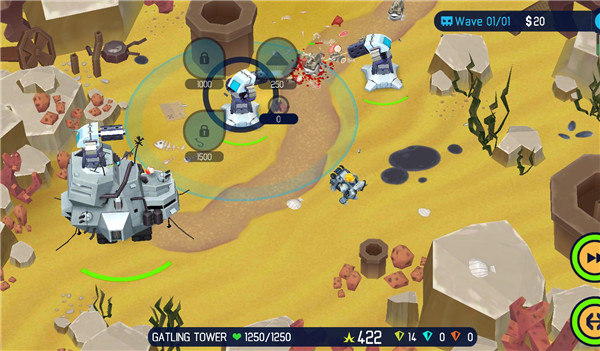 5、最强塔防可以像一般塔防游戏那样给炮塔升级,阻击敌人