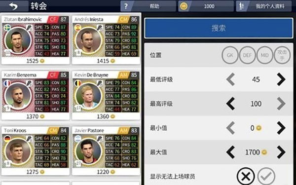 1、梦幻足球联盟2017的游戏AI一直不错,可以打出撞墙配合,直塞跑位等多种技战术,小内存(对比fifa)下画面却相对精美,球星进球后的模型等可以看见是相当还原的,而且游戏提供了球员培训系统,你可以培养你喜欢的球员不同方面发展。2、游戏的缺点就是挣钱真的有点难,刚开始玩一局获胜就一二十个金币,而一个80评分的球员普遍在1000左右,但喜欢足球游戏的各位还是尽量不要修改,这样才具有挑战性,我用总体评分60左右的队伍一脸斩杀总评80+的巴萨皇马获得杯赛冠军。