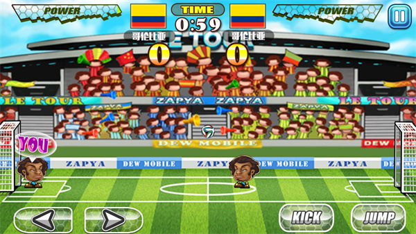 1、采用清新Q萌的画风,塑造了多个可爱的足球小将角色。2、支持单人和双人两种模式,玩家可以叫上朋友一起来玩。
