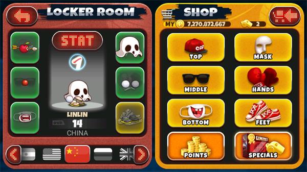 值得一提的是,本作还拥有商店系统。在商店里你可以购买各种各样的装备,为爱将添置行头,用五花八门的装束塑造充满个性的角色。这是小编觉得最有一丝的地方。用自己独到的方式把角色培养成为最强的篮球选手,在接下来的篮球生涯中发挥强力。此外,金币也可以用来解锁新的角色,拥有多国的球员团,成为一个成功的篮球经理人不再是梦。