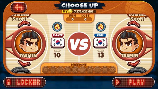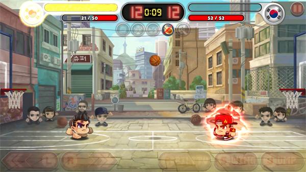 从韩国的火焰投篮手到英国的幽灵船长,游戏中有来自各个国家的球员及对手可供选择,目前游戏中上线了12个富有个性的角色和超能投篮。游戏采用了横版2D画面呈现方式,主角是一个只有二身头的卡通娃娃形象,硕大的头部似乎在强调这个篮球比赛用到的可是头顶。同样由于这样的设计,人物在比赛中五官表情也可以清晰的表现,随着比赛越发激烈,甚至连选手受伤的细节都可以看清楚。