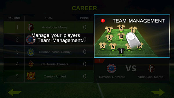 4、尝试击败所有对手并赢得冠军,之后利用比赛收入从转会市场中选择更优质的球员来进一步提升球队实力。