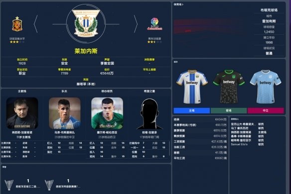 首先阵容方面,莱加内斯的实力在西乙还是很有竞争力的,而且转会预算也远超其他球队,好好运作的话升级还是非常轻松的。