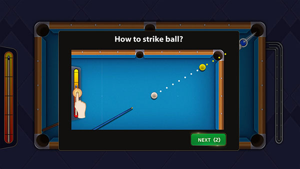 1、打开8球台球游戏,进入首页,选择“NEXT”进行教程。