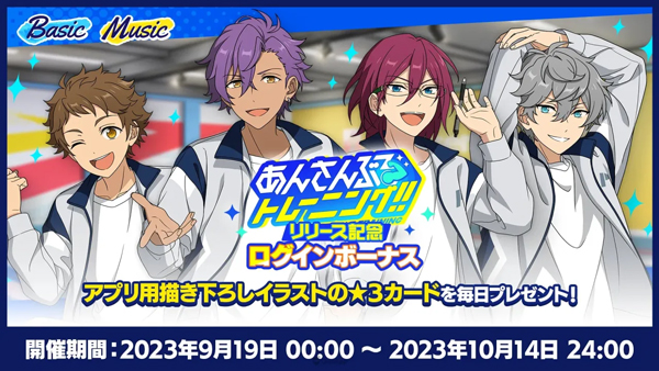 为纪念《偶像梦幻祭! ! Training》的推出,目前日版《偶像梦幻祭! ! Basic》、《偶像梦幻祭! ! Music》正同步举办相关活动。