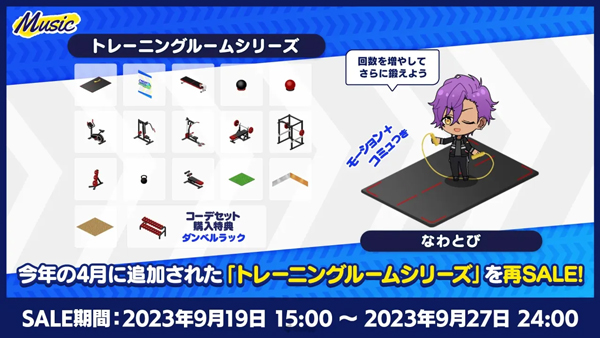 2023 年 9 月 19 日~9 月 27 日,曾于 2023 年 4 月追加的「健身房系列」将再次以 SALE 价格贩售。