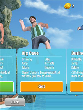 1、大量的角色可供选择以健身者或商人的身份,或身着企鹅服装来跳水!
