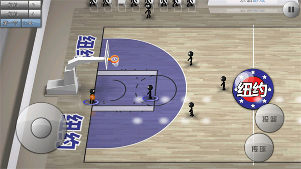 3、赛事中根据虚似遥杆控制火柴人灵便跑位,2个功能键的功效依据防御转换可进行传接球、投球、转换、断球、篮板,让简易的实际操作就能控制多种多样的动作,游戏玩家能够轻轻松松的感受比赛快乐;