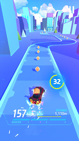 6、底部是现在的速度,主要保持在赛道上行驶,获取金币,不要碰到两侧的建筑。