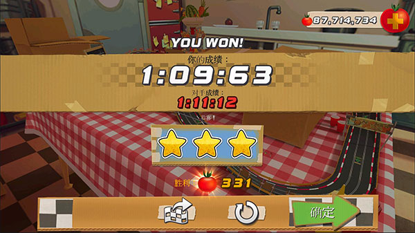 4、我们选择的是对抗赛,因此会和AI对手在同一条赛道上进行比赛,上面还显示了得星细则。