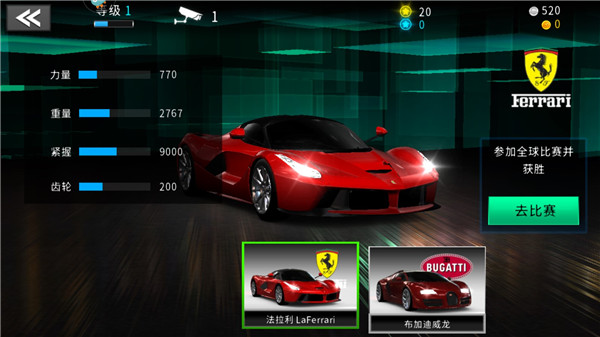 4、赢得比赛胜利可获得金钱,用于购买丰富的赛车;