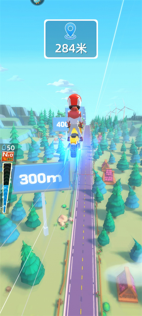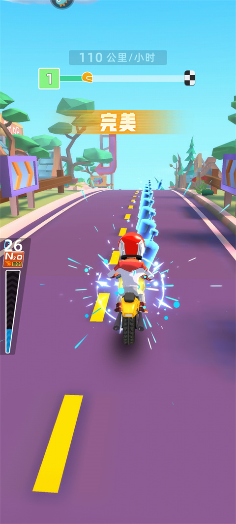 1、我们需要左右移动控制摩托车去触碰马路上的加油瓶,以此来增加能量。