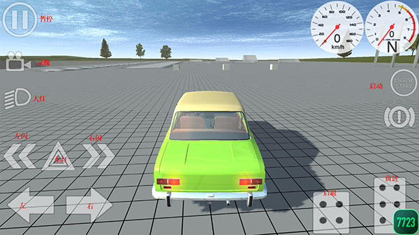 3、如下图所示,点击屏幕可以调整视角,发动汽车需要先点击右侧的“ENGINE START”启动汽车,然后就可以自由驾驶了。
