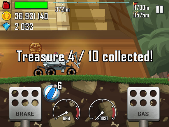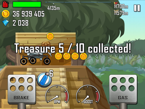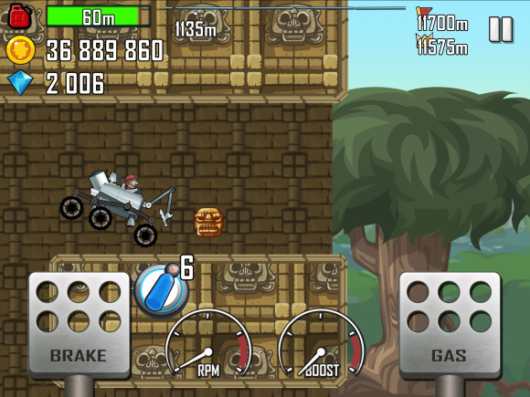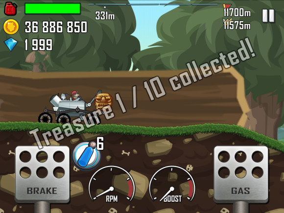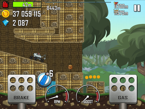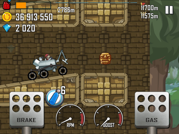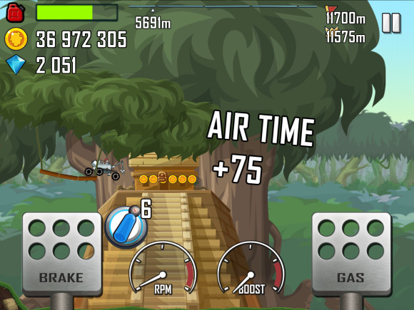 勇敢尝试高超技巧可获得额外奖金,比如飞跃,空中停留的时间越长分越高,前空翻或者后空翻,还有丧心病狂的折颈翻,用生命作为代价赚取的分数……收集金币可以购买新车、开新关卡,升级部件并到达更高距离。游戏难度会根据开出去的距离升级。
