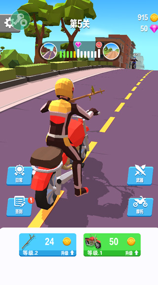 3、几十种不同的摩托车可以选择,在飙车的时候可以使用暴力的手段,快点去购买各种武器吧