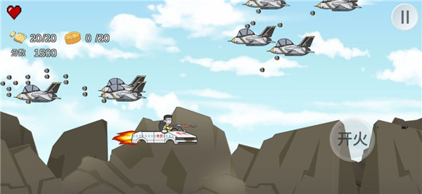 3、注意躲避迎面而来的车辆障碍物,收集沿途道具升上天空和飞机激战吧。