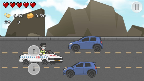 2、这里首先是地面的躲避玩法,玩家需要躲避障碍物保证安全,比如车辆、路障和小蔡等;