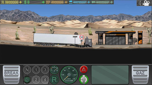 3、单击游戏中的左右按钮以掌握卡车的移动、你自己的卡车也可以换档,您可以自由解锁不同的卡车并在不同的游戏地图中驾驶